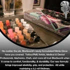 Description " Experience 's Ultra Elastic Black Nitrile Gloves. Our luxurious, black nitrile gloves offer improved protection, comfort, and grip, making them the ideal choice for a multitude of tasks. Whether you're a professional tattoo artist seeking the perfect tattoo gloves, a mechanic in need of durable mechanic gloves, or a food professional looking for food-grade, cooking gloves disposable food safe, our gloves are designed with your needs in mind. Our black nitrile gloves are not just functional, they're also incredibly comfortable. Crafted with our own Ultra Elastic Black Nitrile Formula, these gloves offer Near Zero resistance, reducing hand fatigue over long hours of wear. The textured surface provides greater grip and tactile sensitivity, making them the perfect disposable gloves for precise tasks. Moreover, these gloves are latex-free and powder-free, making them safe for users with latex allergies. At 3.2 mil, these gloves are resistant to tears and punctures, ensuring they can withstand even the most demanding tasks. Experience the perfect blend of protection and functionality with 's Black Nitrile Gloves. " Luxury, Disposable Gloves - Ultimate luxury with 's newly formulated disposable Nitrile Gloves. These gloves are stronger and thinner than before, and provide exceptional comfort and reduce muscle fatigue. Designed with our new nitrile compound that is more elastic and comfortable, ensuring extended wear without compromising on strength. The black color adds a touch of sophistication, making them suitable for all professional settings. 100 Gloves per Box - Each pair of black disposable medical grade nitrile gloves is designed to be easy to put on and take off without compromising your dexterity. Our gloves come with 100 pairs of long lasting nitrile disposable gloves in each box. Blackwork offers quantity discounts available in 3 pack, 5 pack, and 10 pack mastercases. Ideal Tattoo Glove - Blackwork's newly formulated black nitrile disposable gloves were originally created with long tattoo sessions in mind. The ultra thing design, extra elasticity, and increased texture for grip were added to help support the muscles for artists whose hands are in a cramped position for long periods of time. Our gloves are also soft and textured to improve grip. These provide a more comfortable and longer lasting glove. Versatility - These gloves are not only for Tattoo Artists but also ideal for medical professionals, dental hygeniests, nurses, painters, cleaners, plumbers, security personnel, andthe food industry. Their superior strength and comfort make them perfect for extended wear in a variety of fields. This makes them not only a practical choice but also a versatile one. Whether you're a nurse, first responder, or cook, Blackwork's black nitrile exam gloves meet your needs with ease. Latex & Powder Free - Our nitrile exam gloves are completely latex and powder free, providing zero risk of latex or rubber allergens. Ideal for professionals seeking a safe and comfortable glove solution for extended wear during long procedures. This makes them perfect for use as medical gloves, tattoo gloves, cooking gloves, mechanic gloves, and more.