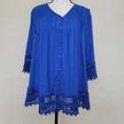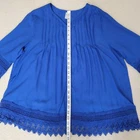 Blair Pintuck V-Neck Button Front 3/4 Sleeve Crochet Lace Tunic Top Size-Large Color-Royal, Cobalt Blue 7 Button Front Closure 3/4 Sleeve Pintuck Front & Back Crochet Lace Trim Detail At Cuff & Hem 100% Rayon Machine Wash/Tumble Dry Measurements Laying Flat Approximate: Shoulder To Shoulder-16.5" Armpit To Armpit-23.5" Sleeve-16.5" From Shoulder Seam Length-26.5" Peasant Boho Pre-owned In Great Condition Every Effort Has Been Made To Accurately Describe & Photograph This Item Some Colors May Vary Depending On Lighting & Device Used To View. Please Reach Out If You Have Questions Prior To Purchase. I Am Happy To Help. Shipping From A Smoke & Pet Free Facility. USPS Ground Advantage