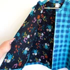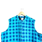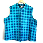 Gingham Checkered Sleeveless Button Front Lightweight Blair Floral Lined Women's Vest 100% cotton shell, lining, and filling Button front closure Side seam pockets Vibrant Teal and blue exterior Black with colorful flowers lining Machine wash India Sz 2X armpit 26 length 26 Good condition