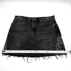 Blank NYC A-line Mini Skirt 74% Cotton, 20% Polyester, 6% Viscose Black Denim Above Knee Length Flat Front A-line Silver-tone Rivet Studs on Sides 5 Pocket Design Zip and Button Closure Unlined Raw Hem No stretch! Women's Size 28 Please refer to measurements below to ensure accurate fit before purchase! 15" waist (30" circumference) 19.5" hips 22" hem 30" full length from waist to hem Measurements made with garment laying flat. Excellent pre owned condition. Very gently owned. No rips, tears, stains, holes or other notable flaws. Clean and from a smoke free home.
