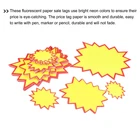 Blank Star Burst Signs Price Tags Paper Pricing Labels Yellow for Retail Sales Pricing, Pack of 100 Blank Star Burst Signs Price Tags Paper Pricing Labels Yellow for Retail Sales Pricing, Pack of 100 Description What is this? Price display sign, capture customers' attention and achieve your sales, suitable for displaying price in retail stores, shops, supermarkets, shopping malls, garage sales, etc. What will I get? Package Content: 100 x Retail Signs Size 1: 90x70mm/3.54x2.75 inch Size 2: 70x50mm/2.75x2 inch Size 3: 130x100mm/5.12x4 inch Size 4: 160x120mm/6.3x4.72inch Are there any advantages of the product? These paper tags use bright colors to ensure their price is eye-catching. The price tag paper is smooth and durable, easy to write with pen, marker or pencil, durable and will not fade. How to use it? Simply clip or stick a price tag next to your product, write the price, and grab your customer's attention, let your customers know the daily price of your products. What should I notice? Sturdy and not easy to break, can be used for a long time. Due to manual measurement, please allow 2-3mm error. Key Features Price display sign, capture customers' attention and achieve your sales, suitable for displaying price in retail stores, shops, supermarkets, shopping malls, garage sales, etc. Package: 100 x Retail Signs; Each 25 pieces These paper tags use bright colors to ensure their price is eye-catching. The price tag paper is smooth and durable, easy to write with pen, marker or pencil, durable and will not fade. Simply clip or stick a price tag next to your product, write the price, and grab your customer's attention, let your customers know the daily price of your products. Sturdy and not easy to break, can be used for a long time. Due to manual measurement, please allow 2-3mm error. Return Information ⦿ Items can be returned within 30 days. Please contact us through eBay messaging for return instructions. ⦿ We ensure 100% satisfaction. If you're not satisfied, we will resolve any issues promptly. ⦿ Free shipping and returns with a 30-day money-back guarantee. ⦿ Please contact us for the return shipping address. Shipping Details ⦿ We ship to the address listed on eBay. Please ensure it is correct. ⦿ Standard delivery time is 3-5 business days. ⦿ We use reputable shipping services like UPS, FedEx, and USPS. ⦿ Currently, we ship only within the 48 contiguous states of the USA. ⦿ For any shipping concerns, feel free to contact us. Customer Support ⦿ For any inquiries, please contact us via eBay messaging. We usually respond within 24 hours. ⦿ We prioritize customer satisfaction above all else. ⦿ Reach out to us with any issues before leaving feedback, and we will do our best to resolve them. About Us We are committed to offering high-quality products at competitive prices, ensuring that our customers receive the best value. Our team strives to provide exceptional customer service and a seamless shopping experience. With years of experience, we have built strong relationships with suppliers, enabling us to offer a wide range of products. We constantly seek to improve our product selection and services to exceed customer expectations. Our mission is to ensure 100% customer satisfaction. We address all concerns promptly and effectively. Thank you for choosing our store, and we look forward to serving you again.