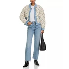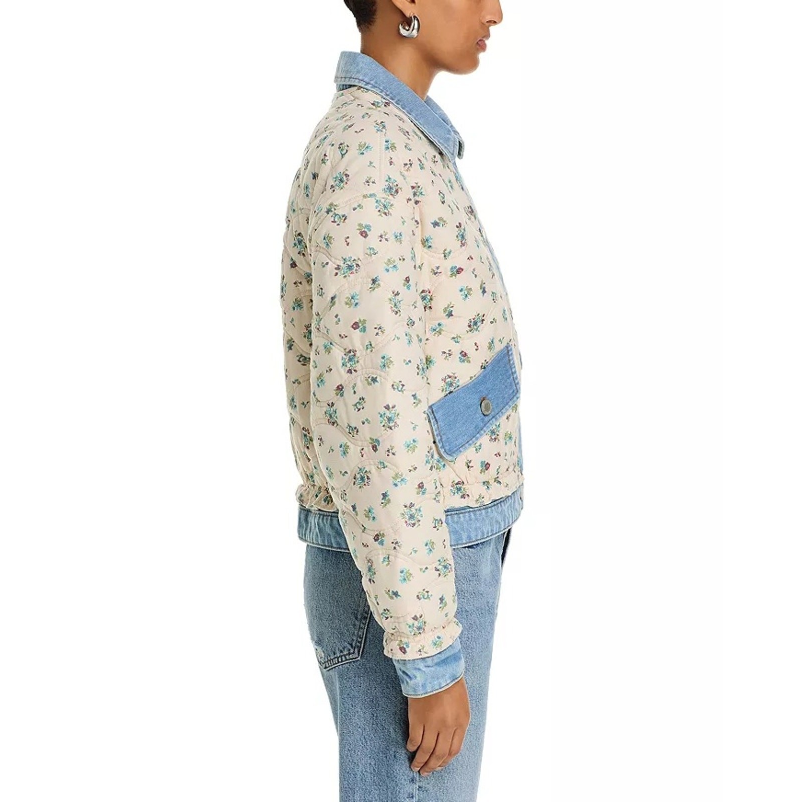 BlankNYC Women Ivory Floral Cotton Denim Quilted Oversize Bomber Jacket Size XS New with tags MSRP $148 Oversized fit Spread collar Button front closures Long sleeves Button flap pockets at hips Overlay quilted design Lined Shell: 100% cotton Lining: 95% polyester, 5% spandex Fill: 100% polyester Machine wash