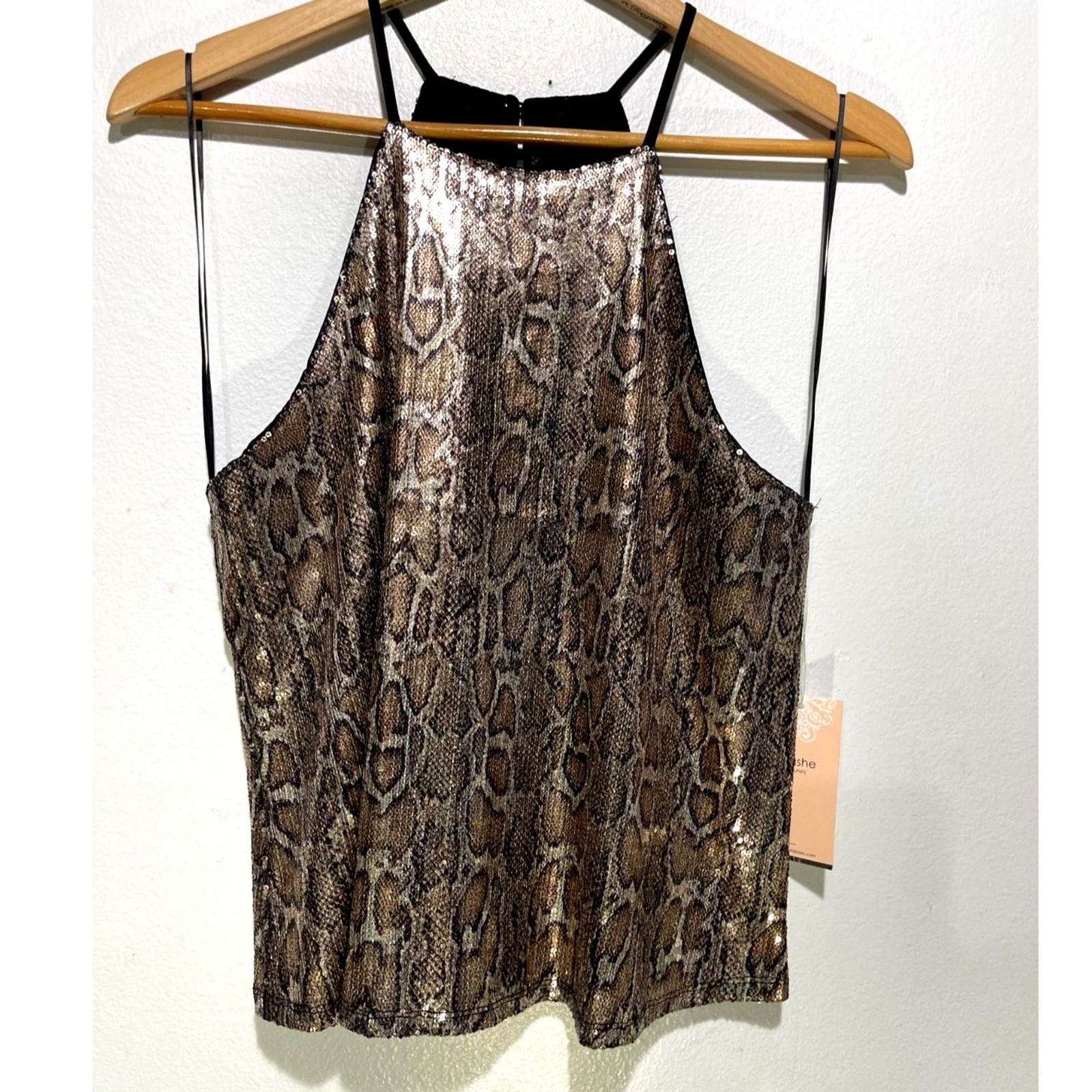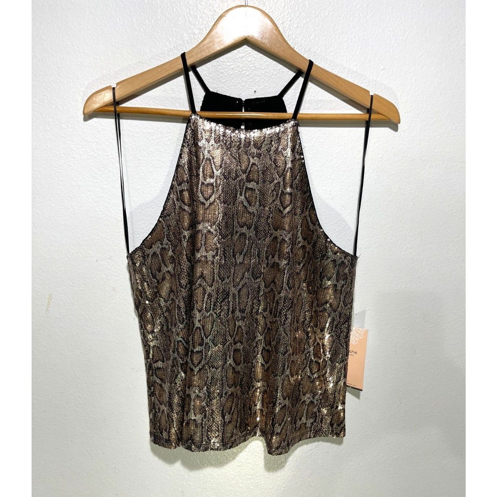 Blashe cropped to sequins animal print tank cutout back disco night women M New