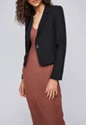 The Moira blazer is made of a crepe suiting fabric and is fully lined for ease of wear. Features include a button front closure and shorter length for styling versatility. Complete the look with the Lottie pant. Details Slim fit Fully lined Functional button closure Materials 100% polyester Sizing Models are wearing size S Care Dry Clean Only