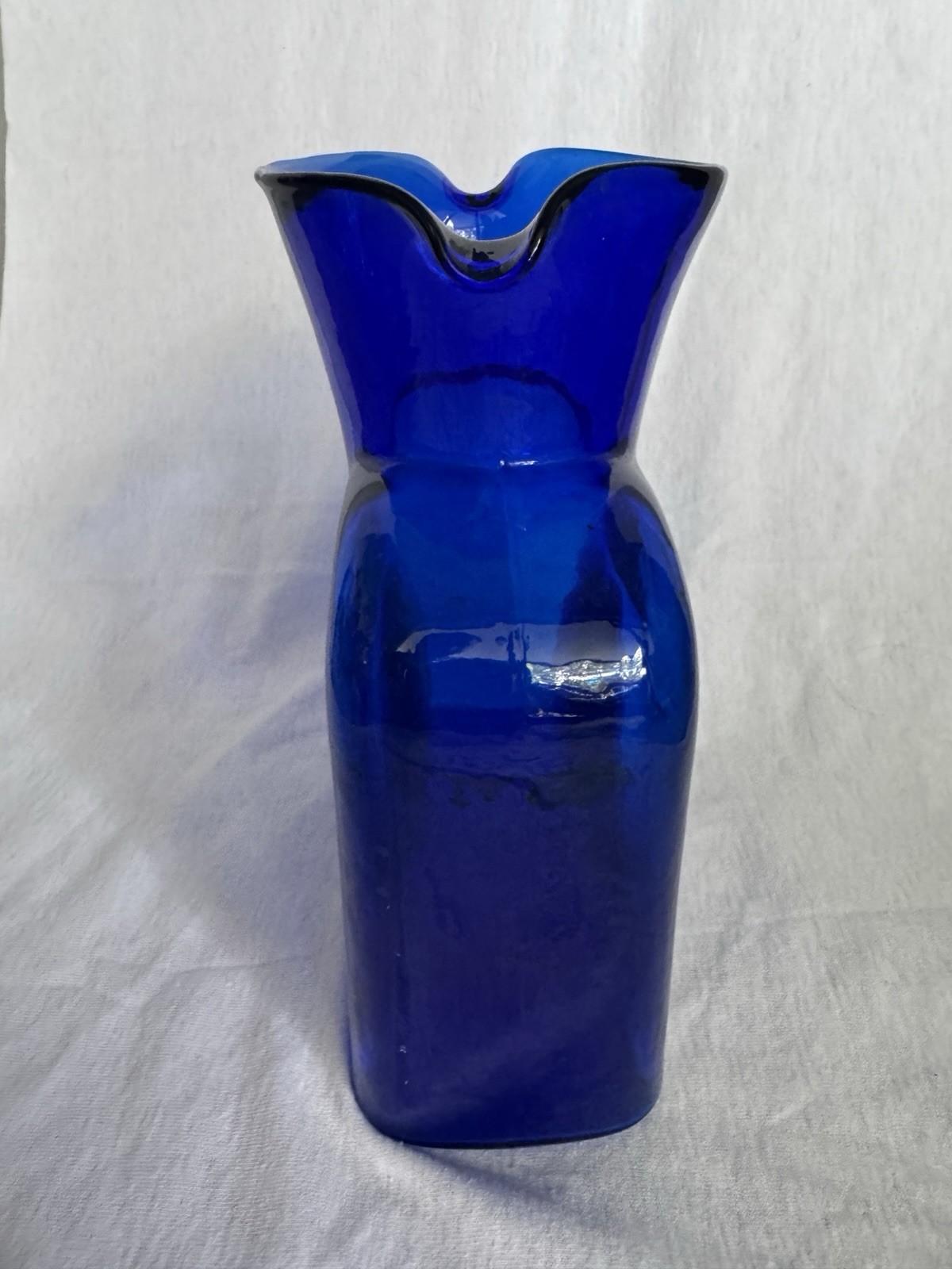 Blenko Art Glass Water Jug Cobalt Blue Bottle Carafe Vase with Double Spout