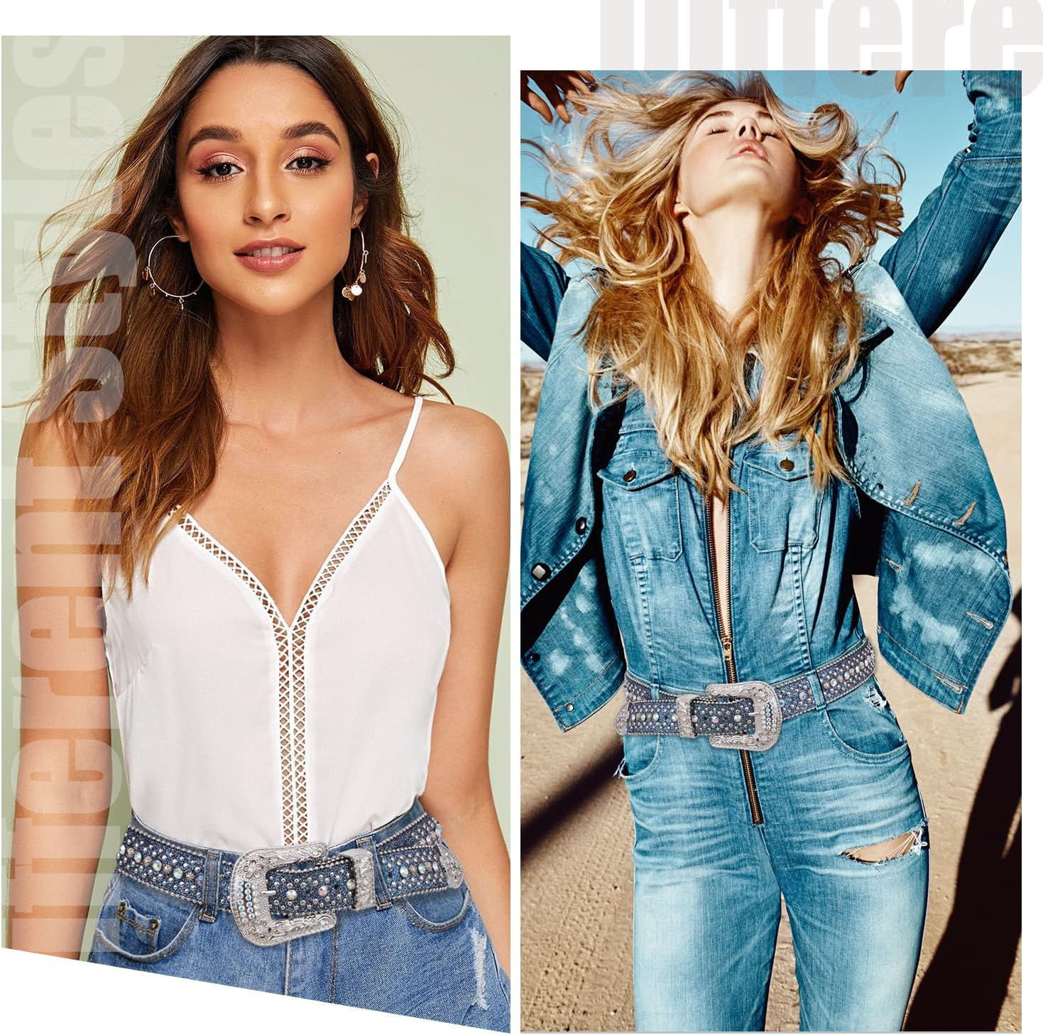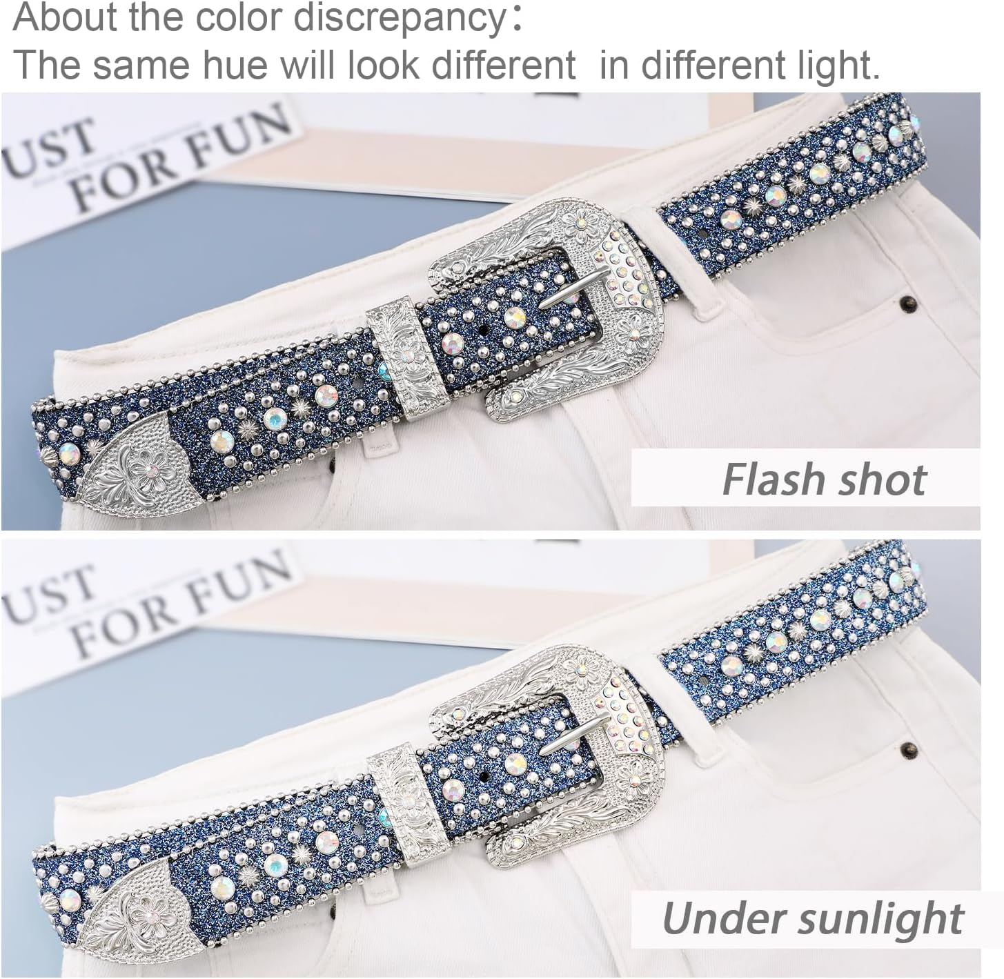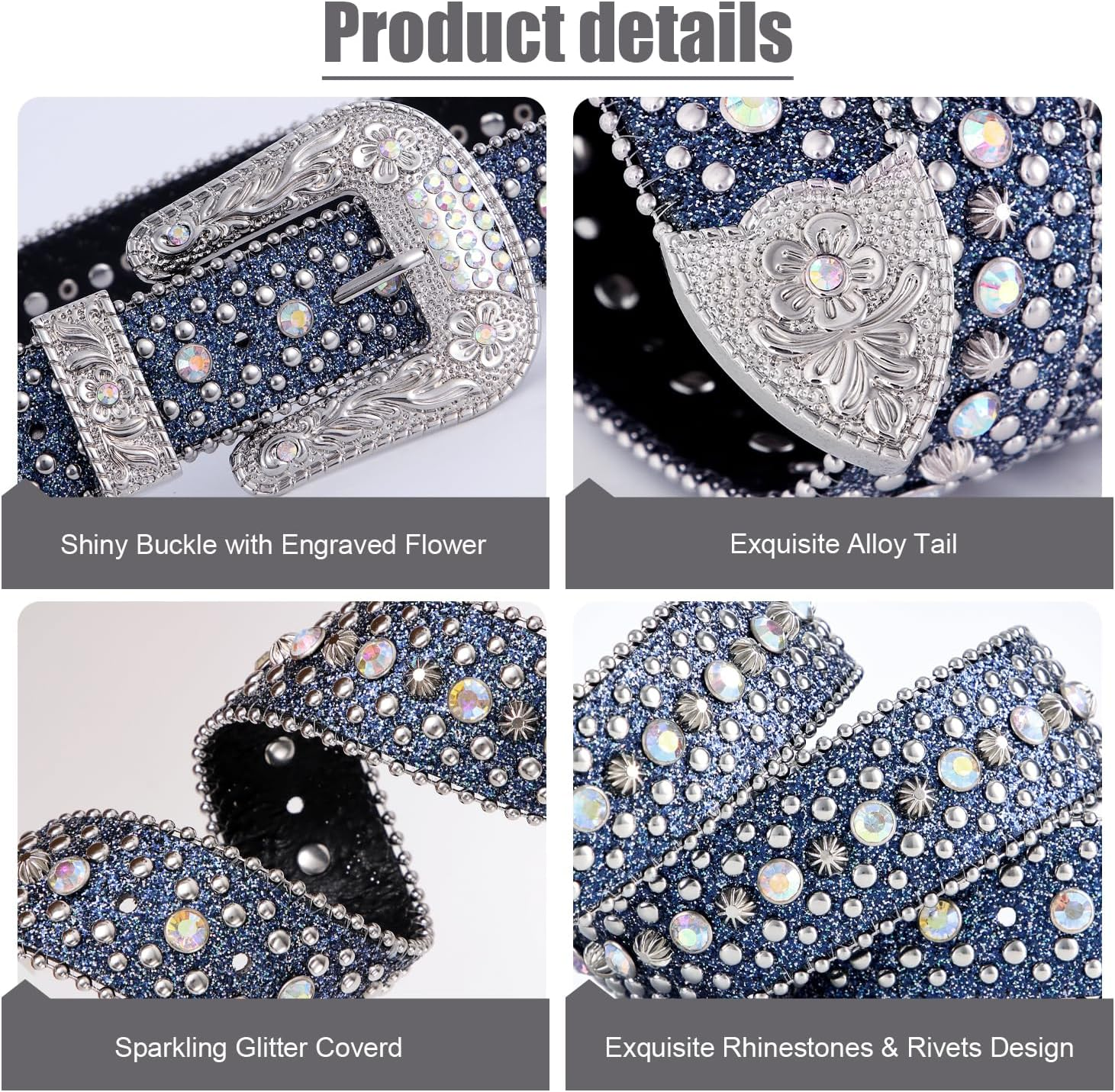 Product Description Notes: There may be a little color difference due to the different light and computer display. Big Metal Buckle The metal buckle is studded with shiny rhinestones and exquisite pattern, making you look more shiny and cool. Sparkling Rhinestones Three rows of sparkling hand-set rhinestones run the length of the belt for an eye-catching look, with beaded trim on both sides for durability and wear. Exquisite Alloy Tail Sturdy alloy metal strap tail helps to slip through trouser loops easily. The belt is designed with seven holes for easy size adjustment.
