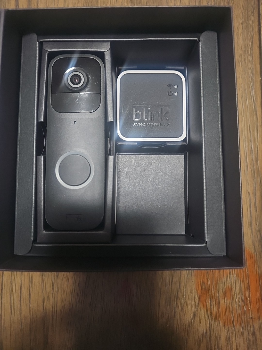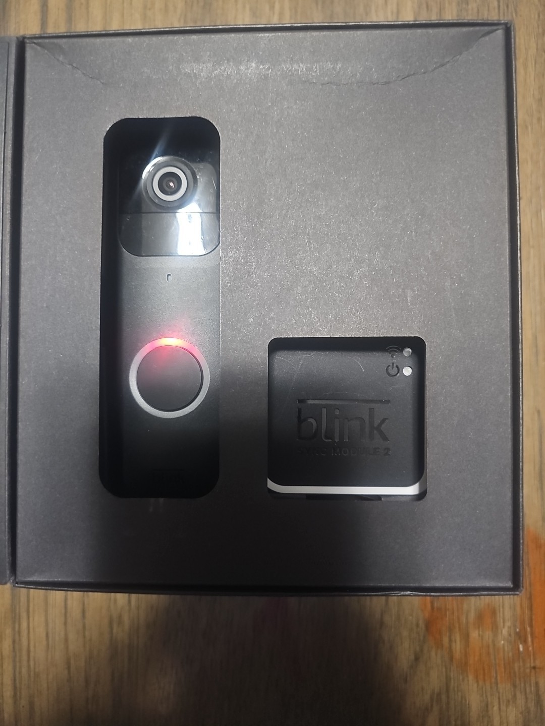 The Blink Video Doorbell + Sync Module 2 in Black is a home surveillance device by IRIS, compatible with Ring products. It features wireless connectivity via Wi-Fi and can be used in both wired and wireless setups. This video doorbell model, Blink, offers advanced security features to enhance the safety of your home. Box has been opened. Batteries are installed in the doorbell. Open box item