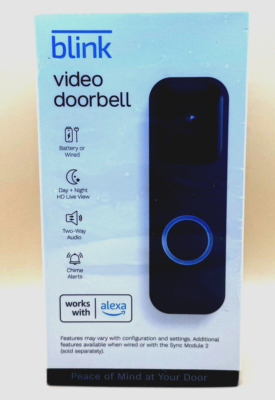 Blink Video Doorbell, Two-way audio, HD video, motion and chime app alerts and Alexa enabled — wired or wire-free (Black) Smart Security at Your Door HD video with two-way audio for clear communication. Motion detection and app alerts notify you of activity. Works with Alexa for hands-free operation. Flexible Installation Choose between wired or wire-free setup to suit your needs. Convenient and Reliable Get notified when someone presses the doorbell or triggers motion detection. Customize chime app alerts to stay informed wherever you are. Sleek and Modern Available in black for a stylish, discreet look.