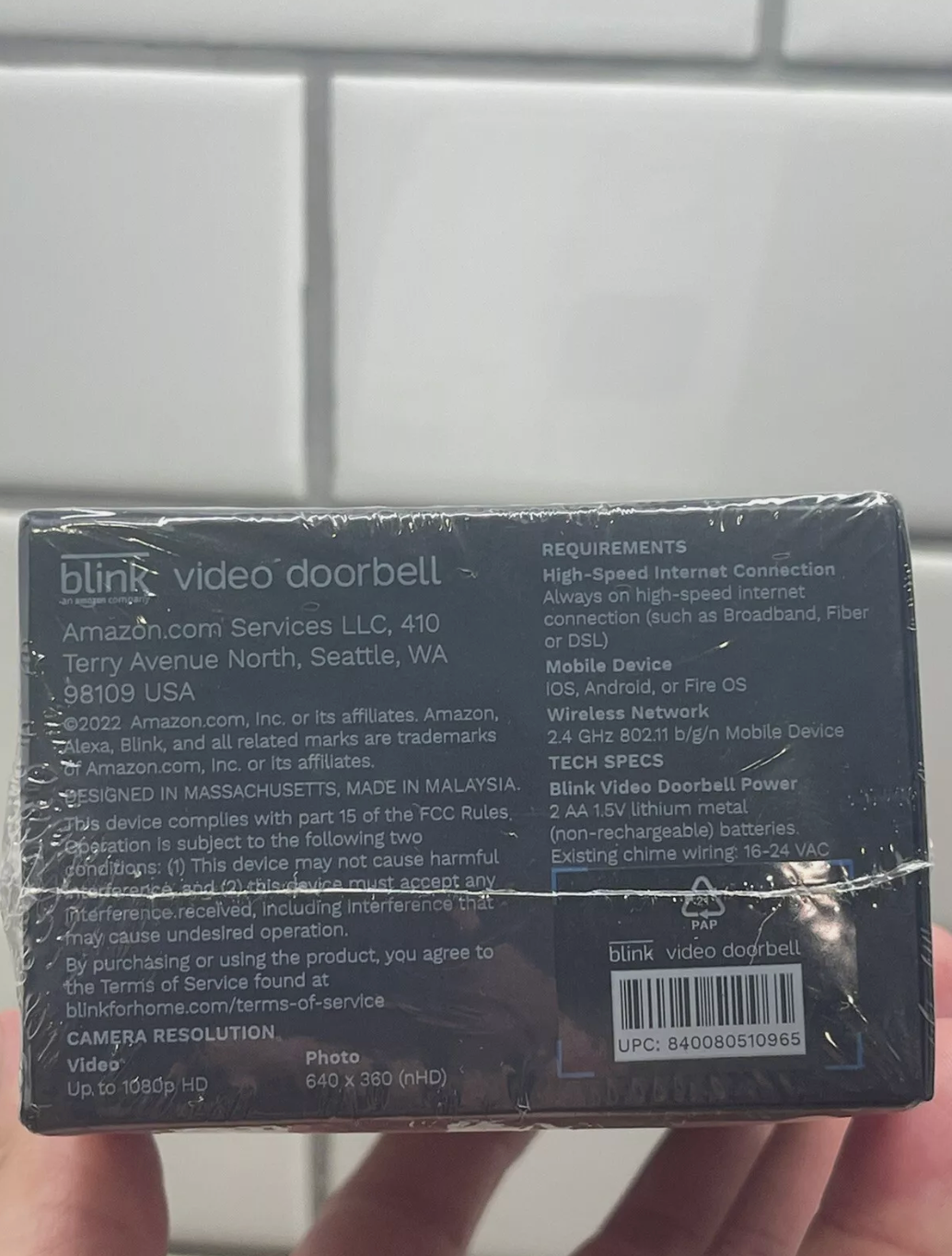 Blink Video Doorbell Wired/Battery Operated Two Way Audio Smart Wi-Fi New in box and sealed Dimensions: 130x42x34 mm