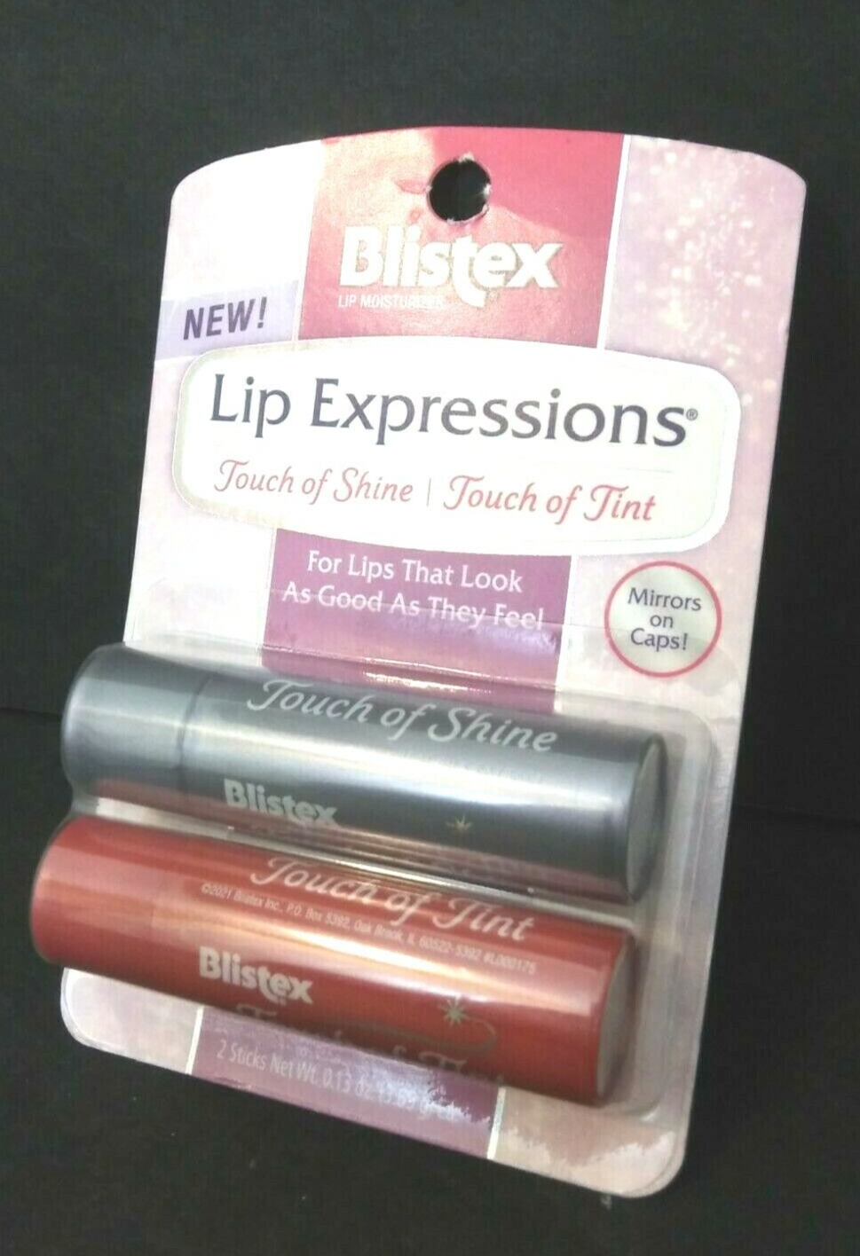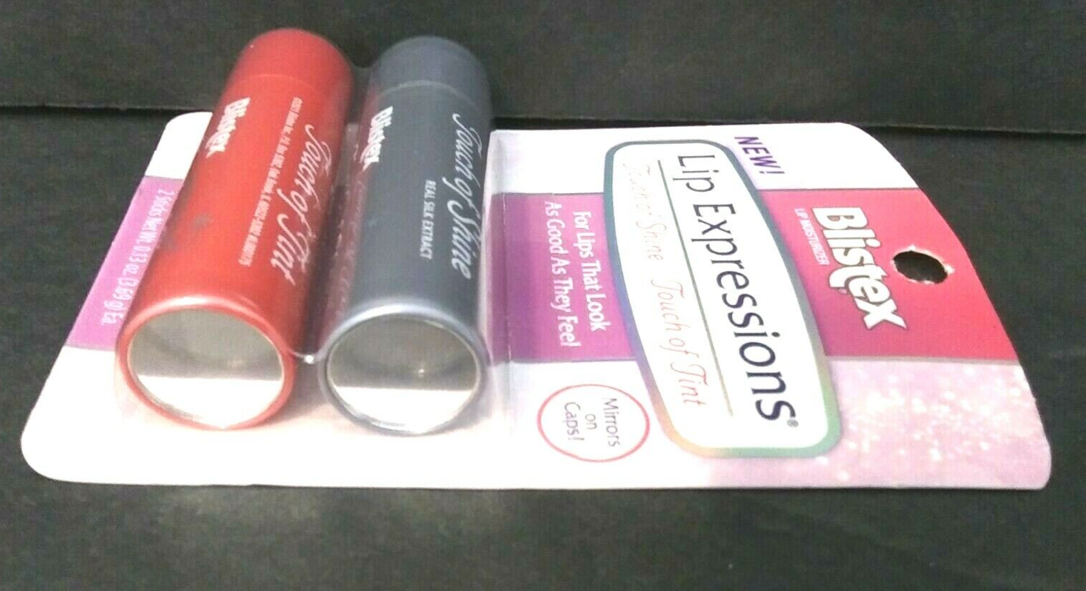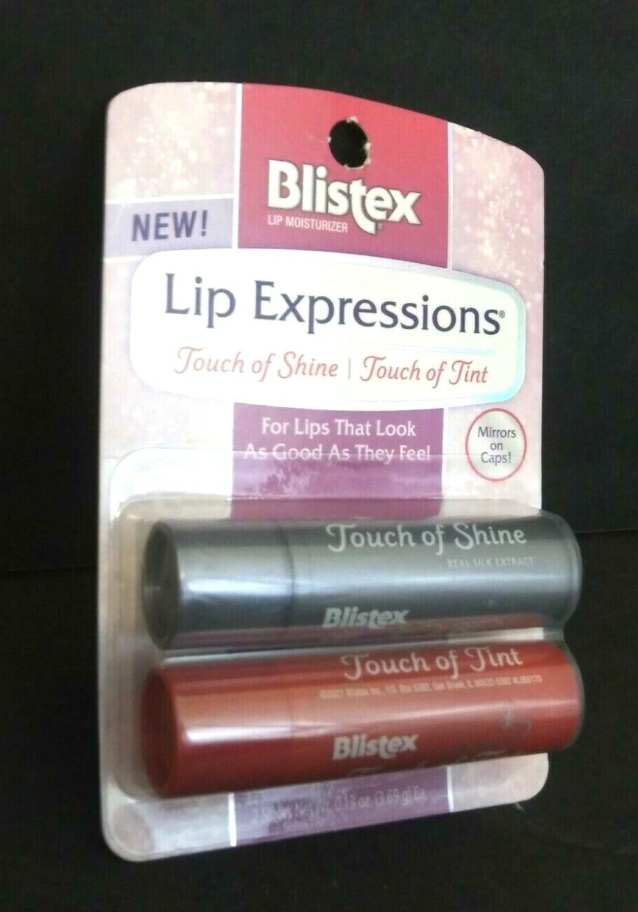 Blistex Lip Expressions Womens Mens Teens Touch Of Shine Touch Of Tint NEW The Blistex Lip Expressions is a set of two lip balms, each with a touch of shine or tint. Both formulas contain aloe vera as the main active ingredient, providing hydration for dry, chapped, or cracked lips. Suitable for all skin types, these lip balms are designed for daily use and offer a comfortable, long-lasting formula. With a UVA protection of N and SPF 0, these lip balms are perfect for keeping your lips healthy and moisturized. Made in the United States by the trusted brand Blistex, these lip balms are a must-have for anyone looking to care for their lips.