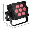 7x 10-watt RGBW Quad-Color (4-in-1) LEDs with 5 user selectable 32-bit dimming curves. 3/4/5/8/9-ch DMX, built-in programs, 4-button LED control panel, dimmer, strobe, sound active, & powerCON compatible AC In/Out. Able to directly power the wiCICLE wireless system via DMX. 7x 10-watt RGBW Quad-Color (4-in-1) LEDs with 5 user selectable 32-bit dimming curves 3/4/5/8/9-ch DMX, built-in programs 4-button LED control panel dimmer, strobe, sound active, & powerCON compatible AC In/Out