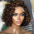 $ 75.9Curly Lace Front Wig Pre Plucked Human Hair Glueless Short Bob