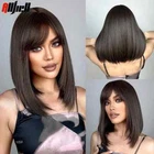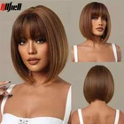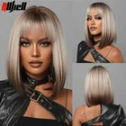 Short Straight Synthetic Wigs for Women Blonde to Brown Ombre Bob Wigs with Bangs Daily Cosplay Party Heat Resistant Fake Hair 【Adjustable size】: The hair cap of synthetic wigs is average size. There are two adjustable elastic bands inside the wig, which can better fit different head shapes and suit most people. 【Premium material】: Our synthetic wigs is made of heat resistant fiber. You can do any hairstyle you like within a safe temperature range. It is not easy to tangles and frizzy, giving you the soft feel 【Exquisite design】: The synthetic wigs design stylish and beautiful, you can use it to make a variety of shapes, very suitable for daily use, party and cosplay, to help you create the perfect date, concert, role-playing, theme party or video shooting. 【Warm Notice】: The color will show some differences on different monitors. If you have sensitive skin, please be aware that using synthetic wigs may cause dryness, heat, or itching of your scalp, so please make sure if you are allergic to wigs. Product Display All Styles Display