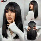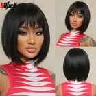 $ 29.51Straight Blonde Highlight Human Hair Wig With Bangs Glueless Machine Made