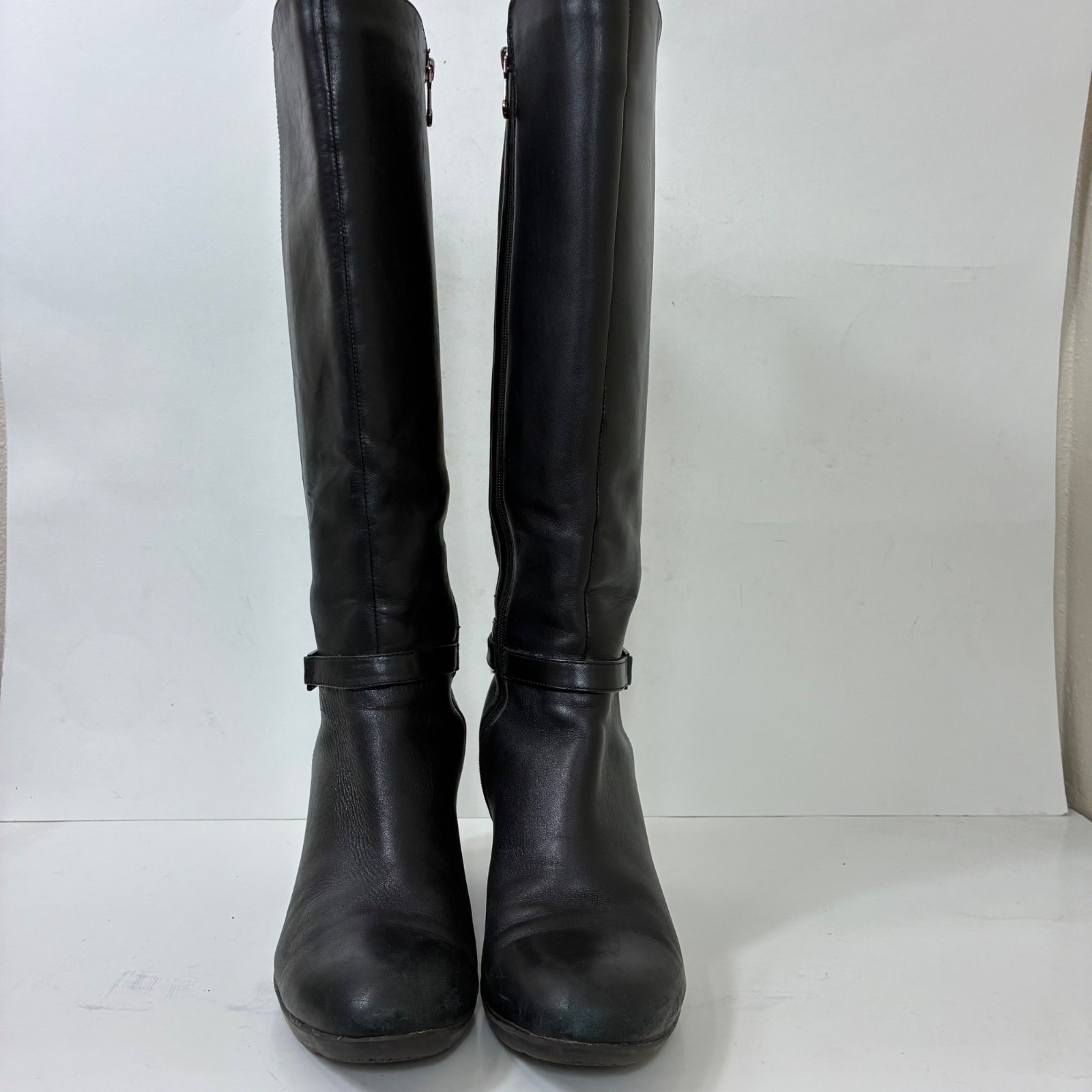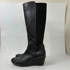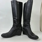 Blondo Tall Black Wedge Boots Size 9 Aquaprotect 3" Heel Sleekcore Light scuffs on the toes. See pics for details. Great preowned condition! These sleek tall boots by Blondo feature a 3” wedge heel and weather-resistant Aquaprotect construction—perfect for cold, damp days with a side of style. The 15” shaft adds that elongating silhouette. Light scuffing on the toes (see pics), but overall in great preowned condition with plenty of wear left. 3” wedge heel Side zip closure 15” upper Box 72 3 lb rainy day, minimal, modern classic, winter casual