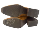 In excellent condition Waterproof suede upper Inside zipper closure Square toe Synthetic lining Fabric footbed Approx. 14" shaft height Approx. 12" calf circumference 2.75" stacked block heel Rubber sole