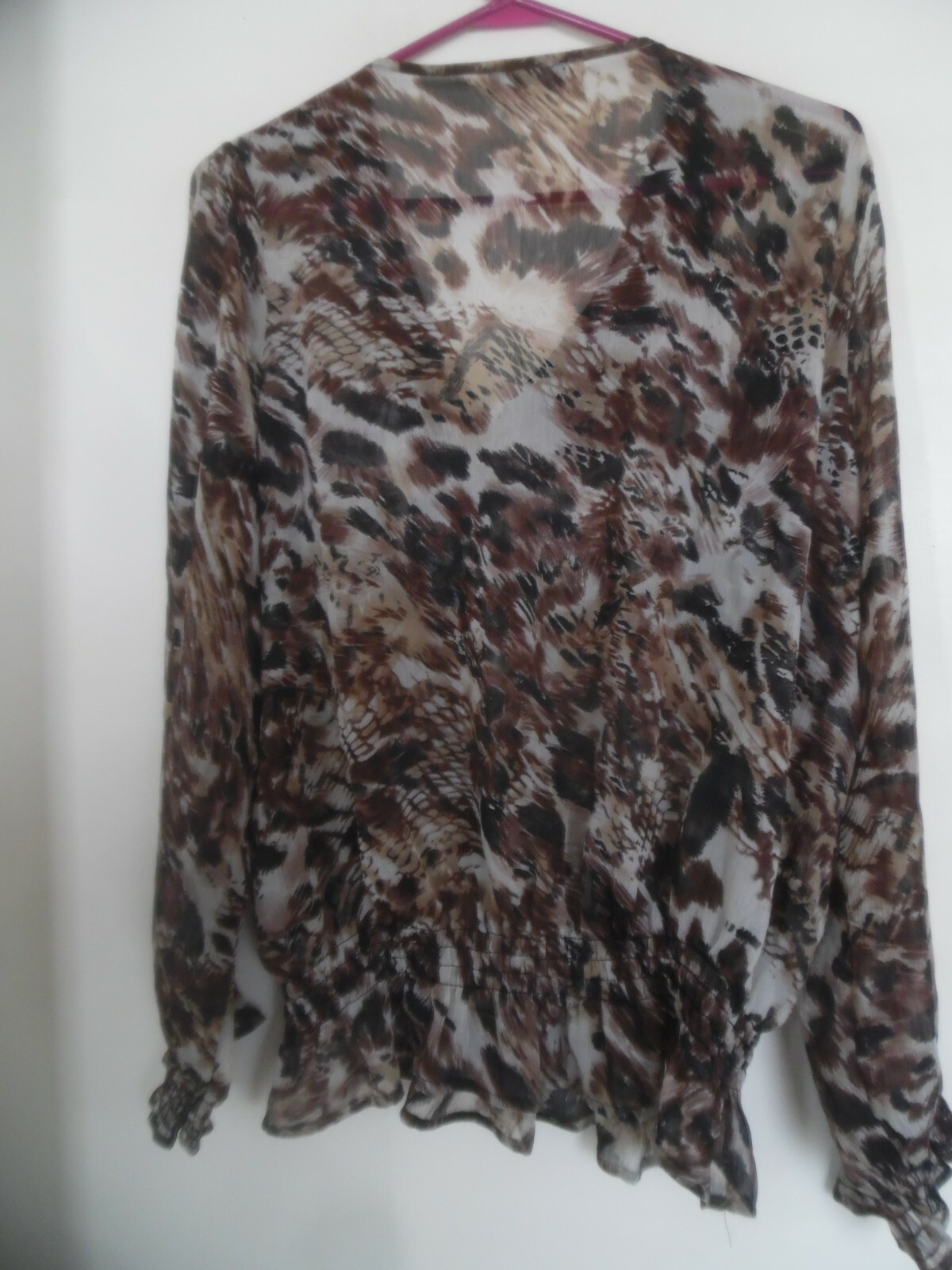 Blooming Rose Women Size XL Animal Prints Sheer Tunic Top Blouse Shirt Armpit-armpit: 23" Sleeve Length 24" Length: 28" AT Combined Shipment: USA : Highest item shipping cost + $3.00. for each subsequent item.Or, you can purchase as many items as you choose and pay the flat rate of $18.75 for your Priority Mail Large Flat Rate Box which covers your entire order. Please read the disclaimer below. INTERNATIONAL SHIPMENTS: Highest item shipping cost + $5. for each subsequent item. Please read the disclaimer below. DISCLAIMER on Shipping Costs: Our intention is to keep our shipping costs as low as possible. However, depending on the item purchased (weight) and the destination, shipping rates can vary; especially 30 Day?s No Questions Asked Returns Policy: Your satisfaction is very important to us. We have a 30 days NO QUESTIONS ASKED returns policy. The item must be returned in the condition in which it was purchased. If there are labels/tags they should not be removed. If they are, the item will be sent back to you. ANY SHIPPING COSTS WILL NOT BE REFUNDED. BOTH WAYS, receiving and any returns. Please contact us for the return shipping address and authorization. ALL COMMUNICATIONS MUST BE IN WRITING & TAKE PLACE THROUGH THE EBAY SITE ONLY. No private direct email correspondence. A customer care rep. will respond to you within 24 hrs (Mon-Fri). Once we have received the merchandise and inspected it, please allow 72 hours for a refund to be issued. NO See my other listings for more great items! We accept PAYPAL. Also we have a virtual terminal with PayPal through which we can accept Visa, MasterCard, Amex, and Discover. If you do not have a PayPal account, it takes virtually minutes to open International shipments: PLEASE DO NOT PAY until we determine your shipping costs. Most of our items also have an International Flat-Rate. Although, if due to the destination or the weight we are unable to honor the rate mentioned in the item?s listing, we will cancel your order and leave you positive feedback. Usually we use the US Postal Service. The best international rate for an international shipment is First Class (up to 4 lbs.)If your items exceed 4 lbs. we may pack them into two separate packages (and notify you of this).You still are eligible to take advantage of the combined shipping rates, even if we have packed them into two separate packages. The fees for packaging, shipping, insurance, Customs Duty Charges on international shipments are all the responsibility of the Buyer and are not included in the purchase price. If the item(s) are gifts, we could indicate ?GIFT? on the customs form so you would avoid paying more on duty.