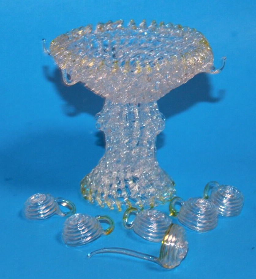Vintage Spun Blown Glass Punch Bowl With Mugs & Ladle Figure. Approx. 3 1/2". 6 hooks & 5 mugs. 1 missing. Any photos used are of the item that you will be receiving, they are not stock photos. Will combine shipping costs for multiple purchases. Shipments to the Continental U.S. only. Sorry, No APO or FPO. Please pay promptly. Please visit our Ebay store for more great items. Combined shipping is not automatic. If you're not sure how to do it, Please contact us and we'll be happy to help.