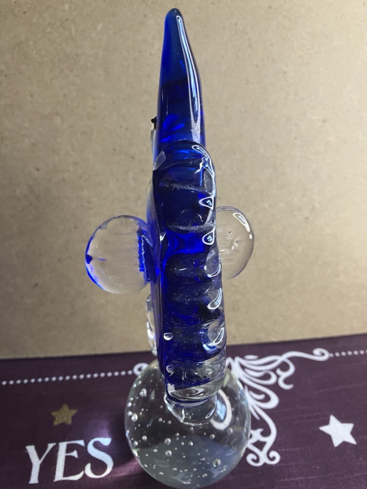 This blown glass paperweight features a stunning design of a seahorse in cobalt blue and clear glass. The intricate detailing of the seahorse shape adds a touch of elegance to any space. Made from high-quality glass through a blown glass production style, this paperweight is not only functional but also a beautiful decorative piece for any home or office. Its unique design and vibrant colors make it a standout piece that is sure to be a conversation starter. Please check out our other listings for great deals on a host of items.