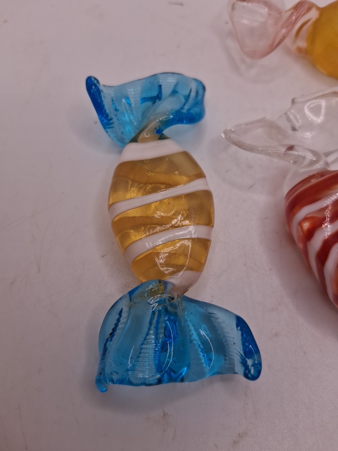 The glass candies are unmarked in the murano style. There are no chips or cracks, please see my other auctions for my other thrift Store finds. I do have other candy listed. Thank you for looking and have a wonderful day!