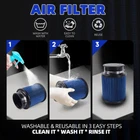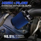 Blue 4" 102mm High Flow Inlet Round Dry Air Filter Cold Air Intake Replacement SPECIFICATIONS: Type: Air Filter Material: Plastic + Metal + Filter Paper Inlet Diameter: 4" / 102mm FEATURES: 100% Brand New and Never Used or Installed Increase horsepower, torque and improve the gas mileage. The high flow air filter help engine to draw more cooler air resulting in better throttle response & higher explosive horsepower output. It comes with a washable and reusable cone air filter and a clamp. Filter consisted of 2 layers to double the filtration efficiency. [How often should air intake filter be replaced?] It should be inspected once a year or every 15,000 to 30,000 miles, but this can varybased on the car and driving environment. If you often drive through dusty terrain oron unpaved roads, you may need to change it more frequently. PACKAGE INCLUDE: 1 x Air Filter Kit All accessories in the picture are included. NOTE: 1. Please allow 0.5-1 inch difference due to manual measurement. (1 inch=2.54cm) 2. Please check the size measurement and the picture carefully before makingpayment. 3. Due to the difference between different monitors, the picture may not reflect theactual color of the item. Please understand, Thank you.