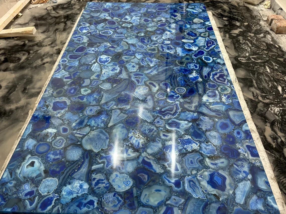 Welcome To Stone-Craft- Creations Shop Description Very unique Art by Indian Artist ,Coffee/Side Table top Used Material: Natural Agate Stones Arts Size: According to Size Variation Color: As Photo Shape: Rectangle Pattern: Handmade Room: Bedroom, Dining Room, Hallway, Home Office/Study, Kid’s Bedroom, Kitchen, Laundry/Utility Room, Living Room,Patio, Playroom Packaging: Wood & Foam Export Packing Shipping: Air Can Be customize ,Please Message us your desired Size 1. It can be used as a Dining Table, Guest table, coffee table, center table top in show room as well as a gift for your loved ones. 2. The table top is made in Agra India & fully handmade. 3. The top will be delivered by FedEx or DHL free of cost door to door. 4. If there is any local tax,custom duties or Vat will be paid by the buyer at the destination. 5. The parcel is dispatch with proper packing & fully insured covering all kind of risk. 6. To maintain the table top is simple soap & water & dry cotton cloth. 7. If You Are Looking Something Customize, Let Us Know We Will Make For You As Per Your Design, Size & Shape. 8.Table top does not includes any wooden, marble stand or base if you like to buy marble or wooden base or stand that will be charged extra. Marble Agate Table Tops We are Manufacturer & Exporter of marble agate table tops. These marble agate table tops have different shapes like Round Table top, Octagonal Table Tops, Rectangle / Dining table tops, Square Table tops, Chess Table tops, Taj Mahal Table tops, Custom Designs Table tops also make marble Table top Base and Stand. Then we can be used as dining tables, coffee tables, Center tables, conference tables, chess boards, reading tables, bar tables , Garden table, side and corner tables or any other use as per the indoor and outdoor decor. They can also be placed outdoors in the garden, as marble is stain free, offers great resistance to the forces of nature, and can withstand heavy temperatures. We also meet customized requirement and offer our marble table tops at industry leading prices. About Agate Stone- Agate is a rock consisting primarily of cryptocrystalline silica, chiefly chalcedony, alternating with microgranular quartz. It is characterized by its fineness of grain and variety of color. Although agates may be found in various kinds of host rock, they are classically associated with volcanic rocks and can be common in certain metamorphic rocks. Ancient use of agate stone Agate is one of the most common materials used in the art of hardstone carving, and has been recovered at a number of ancient sites, indicating its widespread use in the ancient world; for example, archaeological recovery at the Knossos site on Crete illustrates its role in Bronze Age Minoan culture Types Of Agate 1. Fortification Agate This is the most common and distinctive type of agate. In these agates, bands crystallized into concentric layers that more or less follow the shape of the cavity. The banding resembles an aerial view of a fort 2. Water-Line Agate (also called water-level or onyx) During its formation, silica-rich solution either entered the cavity slowly laying one band at a time, excess water drained out leaving a small amount of silica to settle out into separate bands, or the vesicle filled under low pressure. In any case, the silica crystallization in water-level agates is controlled by gravity in one orientation, forming a stack up of parallel bands. 3. Shadow Agate Some agates exhibit a shadow effect in which there is what appears to be movement across the agate layers when the specimen is rocked back and forth (or your orientation to the specimen moves). This optical effect only occurs when there are alternating translucent and opaque bands. It is caused when light goes into the agate, but is not reflected out. 4. Tube Agate Tube Agate During the formation of some agates, parallel projections of tiny hair-thin mineral rods grow first within the silica gel, around which later the chalcedony agate micro-crystals form. In some cases the inclusions remain, but sometimes they weather away leaving hollow tubes that subsequently fill in with silica. 5. Eye Agates This mysterious agate characteristic is believed to be formed when most of the silica gel drains from the cavity, leaving only a droplet that “beads up” on the inside wall of the cavity. This droplet crystallizes into solid chalcedony “eyes”. In some cases, crystal growth will continue from this droplet in a manner similar to the formation of stalactites in caves. Later, the pocket fills in with the usual deposition of chalcedony microcrystals. 6. Plume Agate These agates initially had formations on their outside layer that formed prior to the deposition of chalcedony bands. They are filament growths of mineral inclusions that resemble ferns or feathers. 7. Geode Agate Geode Agate In some cases the supply of silica-rich water runs out before the entire cavity fills in. When there is a hollow center within a crystalline outer fill, the specimen is considered a geode. Not all geodes have agate banding, but many do. Also, the inner layers can form into several different types of silica mineral crystals and may even have other types of mineral crystals. 8. Moss Agate Moss Agate Moss agates have clusters of mineral inclusions that resemble plants, trees, or landscapes. Most moss agate inclusions are comprised of iron or manganese oxide. In some cases, the inclusions inhibit chalcedony banding allowing the mineral clusters free reign to grow within the silica gel. 9. Seam Agate Seam agates for in cracks within host rock, rather than in rounder pockets. The bands form in parallel rows that follow and fill in the crack or seam.