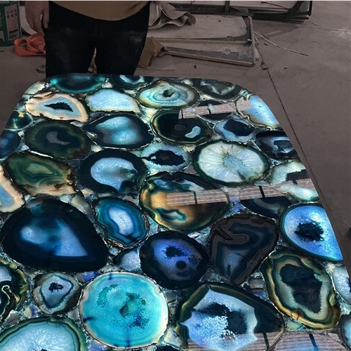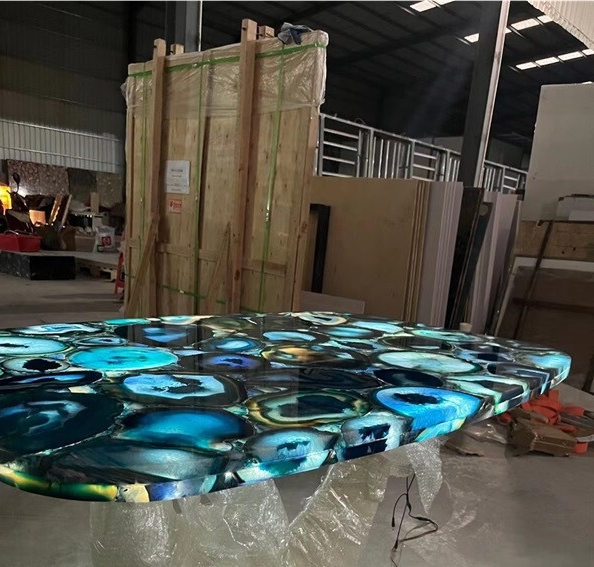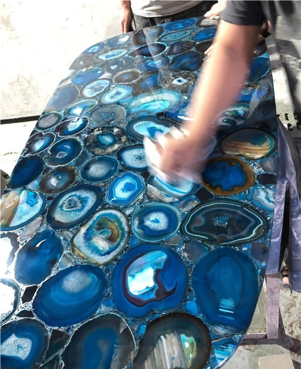 Product Information Type: Agates Stone Table Top Size : 36x24 Inches Shape: Rectangle Thickness: 20-30 mm About Agate Stone Our collection of agate stones features a variety of colors and patterns, making each piece unique and beautiful. These names often reflect the distinct characteristics of each agate stone, such as Botswana Agate, Blue Lace Agate, Fire Agate, and Moss Agate, Green Agate, Pink Agate, Blue Agate, Black Agate, White Agate, Quartz Agate, Pink Quartz Agate Etc. There also some rare agate stones also. Each name carries its own significance and appeal, making agate stones a popular choice for jewelry and decorative items. Agate is one of the most common materials used in the art of hard stone carving, and has been recovered at a number of ancient sites, indicating its widespread use in the ancient world; for example, archaeological recovery at the Knossos site on Crete illustrates its role in Bronze Age Minoan culture . Agate is a rock consisting primarily of crypto crystalline silica, chiefly chalcedony, alternating with micro granular quartz. It is characterized by its fineness of grain and variety of color. Although agates may be found in various kinds of host rock, they are classically associated with volcanic rocks and can be common in certain metamorphic rocks. Can Be customize ,Please Message us your desired Size It can be used as a Dining Table, Guest table, coffee table, center table top in show room as well as a gift for your loved ones. The table top is made in Agra India & fully handmade. The top will be delivered by FedEx or DHL free of cost door to door. If there is any local tax,custom duties or Vat will be paid by the buyer at the destination. The parcel is dispatch with proper packing & fully insured covering all kind of risk. To maintain the table top is simple soap & water & dry cotton cloth. If You Are Looking Something Customize, Let Us Know We Will Make For You As Per Your Design, Size & Shape. will be charged extra. Shipping and packaging We always ship the shipment through DHL or FedEx If there is local tax and custom duty or any tax is to be paid by the buyer We always pack the shipment properly with the help of corrugated box inside with sytro foam All shipment is fully insured We are not liable for any delay due to custom. Kindly Note :~ Table top does not includes any wooden, marble stand or base if you like to buy marble or wooden base or stand that. If you want, please feel free to ask us.