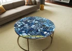 Customization of shape Color and size are available. 1. It can be used as a Dining Table, Guest Coffee Table /Dining Table Top, Counter Top, Wall Panel etc. center table top in show room as well as a gift For your loved ones. 2. The top will be delivered by FedEx or DHL free of cost door to door. 3. If there is any local tax custom duties or Vat will be paid by the buyer at destination. 4. The parcel is dispatch with proper packing & fully insured Covering all kind of risk 5. To maintain the table top is simple soap & water & dry cotton Cloth. 6. This is only Table Top & Base/Leg is not included. We are Manufacturer & Exporter of marble agate table tops. These marble agate table tops have different shapes like Round Table top, Octagonal Table Tops, Rectangle / Dining table tops, Square Table tops, Chess Table tops. An agate table top refers to a tabletop made from agate stone. Agate is a type of cryptocrystalline silica, typically formed in volcanic rock cavities or other geologic formations. It is characterized by its colorful bands or patterns, which are a result of various minerals filling in the voids within the rock. Process To make agate Products: To create an agate table top, thin slices of agate are often cut and polished to showcase the intricate and vibrant patterns. These slices are then bonded onto a sturdy backing material, such as glass, acrylic, or wood, to form the tabletop. The backing material provides support and stability while allowing the beauty of the agate to be displayed. Agate table tops are prized for their natural beauty and unique patterns, making them a popular choice for decorative and luxury furniture pieces. They can be used as coffee tables, end tables, dining tables, or even accent pieces in interior Decoration. Due to the natural variations in agate patterns each table top is one-of-a-kind adding to its allure. Agate is a translucent variety of micro crystalline quartz. It is used as a semiprecious stone when it is of desirable quality and color.