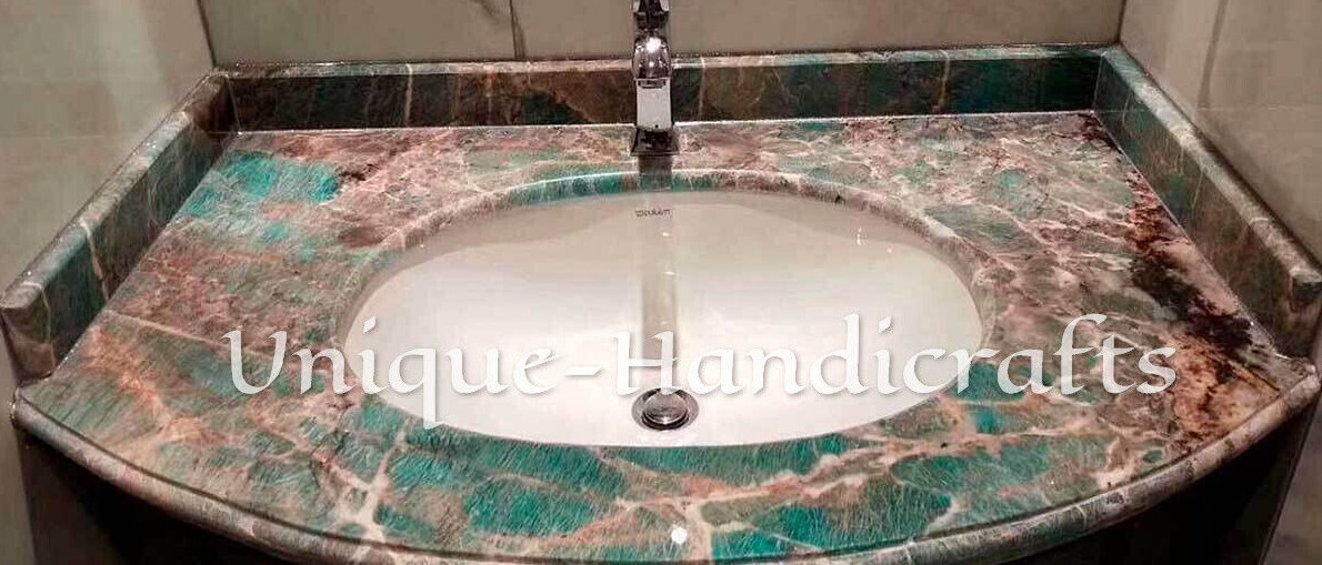 Welcome To Unique-Handicrafts Shop Description Very unique Art by Indian Artist ,Coffee/Side Table top Used Material: Natural Agate Stones Arts Size: As Per Size Variations Color: Blue Shape: Rectangle Pattern: Handmade Room: Bedroom, Dining Room, Hallway, Home Office/Study, Kid’s Bedroom, Kitchen, Laundry/Utility Room, Living Room,Patio, Playroom Packaging: Wood & Foam Export Packing Shipping: Air Can Be customize ,Please Message us your desired Size 1. It can be used as a Dining Table, Guest table, coffee table, center table top in show room as well as a gift for your loved ones. 2. The table top is made in Agra India & fully handmade. 3. The top will be delivered by FedEx or DHL free of cost door to door. 4. If there is any local tax,custom duties or Vat will be paid by the buyer at the destination. 5. The parcel is dispatch with proper packing & fully insured covering all kind of risk. 6. To maintain the table top is simple soap & water & dry cotton cloth. 7. If You Are Looking Something Customize, Let Us Know We Will Make For You As Per Your Design, Size & Shape. 8.Table top does not includes any wooden, marble stand or base if you like to buy marble or wooden base or stand that will be charged extra. Marble Agate Table Tops We are Manufacturer & Exporter of marble agate table tops. These marble agate table tops have different shapes like Round Table top, Octagonal Table Tops, Rectangle / Dining table tops, Square Table tops, Chess Table tops, Taj Mahal Table tops, Custom Designs Table tops also make marble Table top Base and Stand. Then we can be used as dining tables, coffee tables, Center tables, conference tables, chess boards, reading tables, bar tables , Garden table, side and corner tables or any other use as per the indoor and outdoor decor. They can also be placed outdoors in the garden, as marble is stain free, offers great resistance to the forces of nature, and can withstand heavy temperatures. We also meet customized requirement and offer our marble table tops at industry leading prices. About Agate Stone- Agate is a rock consisting primarily of cryptocrystalline silica, chiefly chalcedony, alternating with microgranular quartz. It is characterized by its fineness of grain and variety of color. Although agates may be found in various kinds of host rock, they are classically associated with volcanic rocks and can be common in certain metamorphic rocks. Ancient use of agate stone Agate is one of the most common materials used in the art of hardstone carving, and has been recovered at a number of ancient sites, indicating its widespread use in the ancient world; for example, archaeological recovery at the Knossos site on Crete illustrates its role in Bronze Age Minoan culture. Types Of Agate 1. Fortification Agate This is the most common and distinctive type of agate. In these agates, bands crystallized into concentric layers that more or less follow the shape of the cavity. The banding resembles an aerial view of a fort 2. Water-Line Agate (also called water-level or onyx) During its formation, silica-rich solution either entered the cavity slowly laying one band at a time, excess water drained out leaving a small amount of silica to settle out into separate bands, or the vesicle filled under low pressure. In any case, the silica crystallization in water-level agates is controlled by gravity in one orientation, forming a stack up of parallel bands. 3. Shadow Agate Some agates exhibit a shadow effect in which there is what appears to be movement across the agate layers when the specimen is rocked back and forth (or your orientation to the specimen moves). This optical effect only occurs when there are alternating translucent and opaque bands. It is caused when light goes into the agate, but is not reflected out. 4. Tube Agate Tube Agate During the formation of some agates, parallel projections of tiny hair-thin mineral rods grow first within the silica gel, around which later the chalcedony agate micro-crystals form. In some cases the inclusions remain, but sometimes they weather away leaving hollow tubes that subsequently fill in with silica. 5. Eye Agates This mysterious agate characteristic is believed to be formed when most of the silica gel drains from the cavity, leaving only a droplet that “beads up” on the inside wall of the cavity. This droplet crystallizes into solid chalcedony “eyes”. In some cases, crystal growth will continue from this droplet in a manner similar to the formation of stalactites in caves. Later, the pocket fills in with the usual deposition of chalcedony microcrystals. 6. Plume Agate These agates initially had formations on their outside layer that formed prior to the deposition of chalcedony bands. They are filament growths of mineral inclusions that resemble ferns or feathers. 7. Geode Agate Geode Agate In some cases the supply of silica-rich water runs out before the entire cavity fills in. When there is a hollow center within a crystalline outer fill, the specimen is considered a geode. Not all geodes have agate banding, but many do. Also, the inner layers can form into several different types of silica mineral crystals and may even have other types of mineral crystals. 8. Moss Agate Moss Agate Moss agates have clusters of mineral inclusions that resemble plants, trees, or landscapes. Most moss agate inclusions are comprised of iron or manganese oxide. In some cases, the inclusions inhibit chalcedony banding allowing the mineral clusters free reign to grow within the silica gel. 9. Seam Agate Seam agates for in cracks within host rock, rather than in rounder pockets. The bands form in parallel rows that follow and fill in the crack or seam.