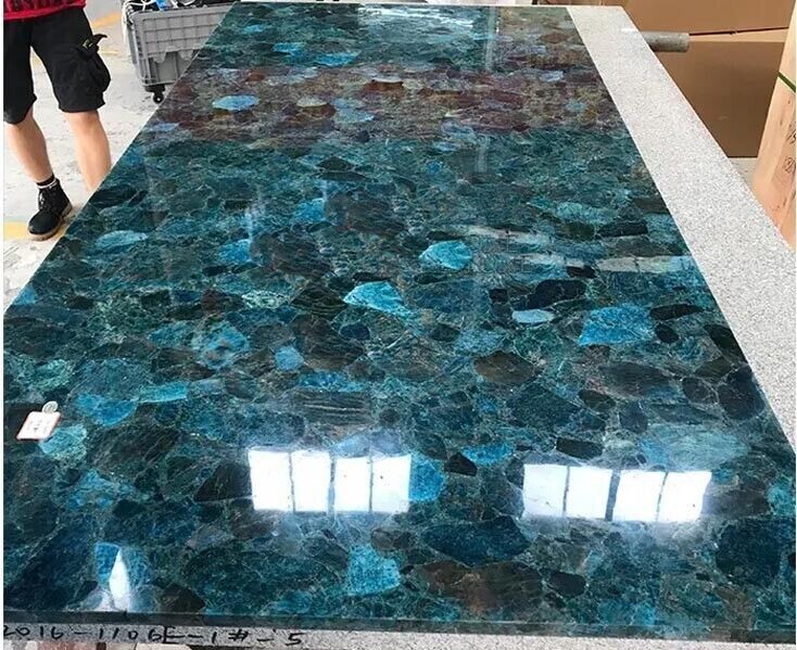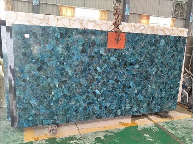 This product is a rectangular Apatite Stone Countertop, with a polished finish and a thickness of 20-30mm. It is a handmade piece of art from India, with a unique pattern and color as shown in the photos. The countertop is made of natural agate stone and can be used both indoors and outdoors. It is perfect for use in the kitchen, bathroom, living room, dining room, entryway, or home office/study. Key Features: Artistic Design : Each table top is a one-of-a-kind masterpiece, showcasing the vivid and swirling hues of agate in its natural form. the uniqueness of a agate table top—a timeless fusion of natural allure and refined craftsmanship that elevates any space with its unparalleled charm and beauty." Durable Construction: The tabletop is made from high-quality wood, providing a sturdy foundation for daily use. The agate stone not only adds a glossy finish but also ensures longevity and protection against scratches and wear. Versatile Decor : Whether you have a modern, eclectic, or bohemian decor style, this table seamlessly fits into various settings. It's perfect for living rooms, dining areas, offices, or as a unique addition to your studio. Easy Maintenance : The item requires no additional parts or tools for assembly and can be easily cleaned with a damp cloth. Customizable Options : We understand the importance of personalization. Contact us to discuss custom color options, sizes, or specific design elements to ensure your table suits your unique taste and space requirements. Specifications: Very unique Art by Indian Artist ,Coffee/Side Table top Used Material: Natural Agate Stones Arts Size: 24"x48" Inches Color: AS Photos Shape: Rectangle Pattern: Handmade Room: Bedroom, Dining Room, Hallway, Home Office/Study, Kid’s Bedroom, Kitchen, Laundry/Utility Room, Living Room,Patio, Playroom Packaging: Wood & Foam Export Packing Shipping: Air Shipping and Packaging: Note:- This is Only table top/ Slab , Leg /base is not included , If you have any kind of query ,please message us * We can make the table top similar to this as it is handmade or natural process you will not get the same as shown in picture but you will get the similar one * The table top is made in Agra India & fully handmade. * The top will be delivered by FedEx or DHL free of cost door to door. * If there is any local tax, custom duties or Vat will be paid by the buyer at the destination. * The parcel is dispatch with proper packing & fully insured covering all kind of risk. Thanking You...