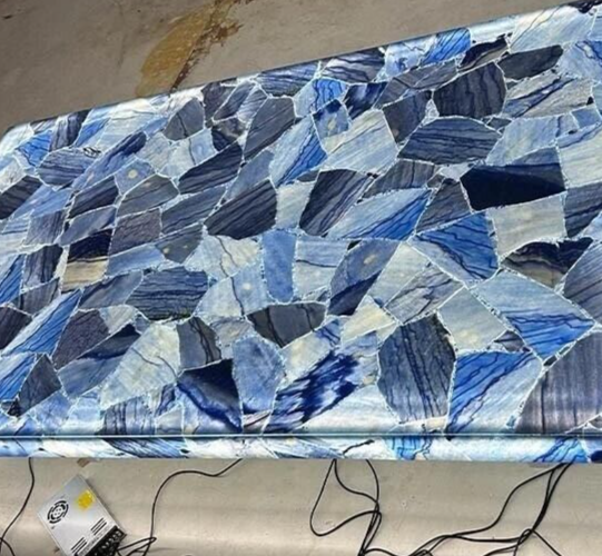 This product is a rectangular Blue Aventurine Stone Countertop, with a polished finish and a thickness of 10-20mm. It is a handmade piece of art from India, with a unique pattern and color as shown in the photos. The countertop is made of natural agate stone and can be used both indoors and outdoors. It is perfect for use in the kitchen, bathroom, living room, dining room, entryway, or home office/study. Key Features: Artistic Design : Each table top is a one-of-a-kind masterpiece, showcasing the vivid and swirling hues of agate in its natural form. the uniqueness of a agate table top—a timeless fusion of natural allure and refined craftsmanship that elevates any space with its unparalleled charm and beauty." Durable Construction: The tabletop is made from high-quality wood, providing a sturdy foundation for daily use. The agate stone not only adds a glossy finish but also ensures longevity and protection against scratches and wear. Versatile Decor : Whether you have a modern, eclectic, or bohemian decor style, this table seamlessly fits into various settings. It's perfect for living rooms, dining areas, offices, or as a unique addition to your studio. Easy Maintenance : The item requires no additional parts or tools for assembly and can be easily cleaned with a damp cloth. Customizable Options : We understand the importance of personalization. Contact us to discuss custom color options, sizes, or specific design elements to ensure your table suits your unique taste and space requirements. Specifications: Very unique Art by Indian Artist ,Coffee/Side Table top Used Material: Natural Blue Aventurine Stones Arts Size: 36"x24" Inches Color: Blue Shape: Rectangle Pattern: Handmade Room: Bedroom, Dining Room, Hallway, Home Office/Study, Kid’s Bedroom, Kitchen, Laundry/Utility Room, Living Room,Patio, Playroom Packaging: Wood & Foam Export Packing Shipping: Air Shipping and Packaging: Note:- This is Only table top/ Slab , Leg /base is not included , If you have any kind of query ,please message us * We can make the table top similar to this as it is handmade or natural process you will not get the same as shown in picture but you will get the similar one * The table top is made in Agra India & fully handmade. * The top will be delivered by FedEx or DHL free of cost door to door. * If there is any local tax, custom duties or Vat will be paid by the buyer at the destination. * The parcel is dispatch with proper packing & fully insured covering all kind of risk. Thanking You...