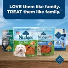 Important Note for Our Valued Customers: To offer you the best prices with free shipping, we occasionally experience shipping delays. If this happens, we’ll notify you immediately, issue a full refund, and invite you to place a new order at your convenience. To keep costs low, we sometimes reuse branded packaging boxes for shipments—we appreciate your understanding if you receive your order in repurposed packaging. Rest assured, all products we sell are 100% brand new, unopened, and freshly manufactured, including pet food and human-grade items, with a minimum 8-month shelf life remaining. If any issues arise, please contact us first—we’re committed to resolving them quickly. If you’re not completely satisfied, we offer a full refund with no hassle. Thank you for your trust and support! Description BLUE Nudges Jerky All Natural Dog Treats are oven-dried and easy to tear, making them great for dogs of all breed sizes and ages. These dog jerky treats offer tender, tasty morsels of real USA chicken that your pup will go wild for. And like all Blue Buffalo dog treats, these treats for dogs don't contain chicken (or poultry) by-product meals and are free of corn, wheat, and soy. Plus, they're free of artificial preservatives and colors, so you can feel confident you are giving your dog snacks made with healthy, wholesome ingredients that you'll enjoy giving them as much as they like eating them. highlights REAL MEAT FIRST: These dog jerky treats are made with USA-raised chicken for a taste dogs love TENDER & TASTY: These delicious real-meat dog treats are the perfect reward for all breed sizes TENDER & TASTY: Delicious, oven-dried and easy to tear, these all-natural dog treats are perfect for all breed sizes WHOLESOME INGREDIENTS: These all-natural dog treats contain no chicken by-product meals, corn, wheat, soy, artificial flavors, or preservatives INCLUDED IN PACKAGE: contains one (1) 16-oz. bag of BLUE Nudges Jerky Cuts Natural Dog Treats, Chicken ENHANCED IMAGERY: We have enhanced our digital product packaging to highlight our products’ ingredients and essential benefits. While the physical packaging will differ slightly, all information is accurate Amount : % Daily Value* Crude Protein (Min) 25% min Crude Fat (Min) 9% min Crude Fiber (Max) 1% max Moisture (Max) 28% max * Percentage of Daily Values are based on a 2,000 calorie diet. Ingredients: chicken, rice, vegetable glycerin, sugar, vinegar, natural flavor, salt, natural smoke flavor, paprika (for color)