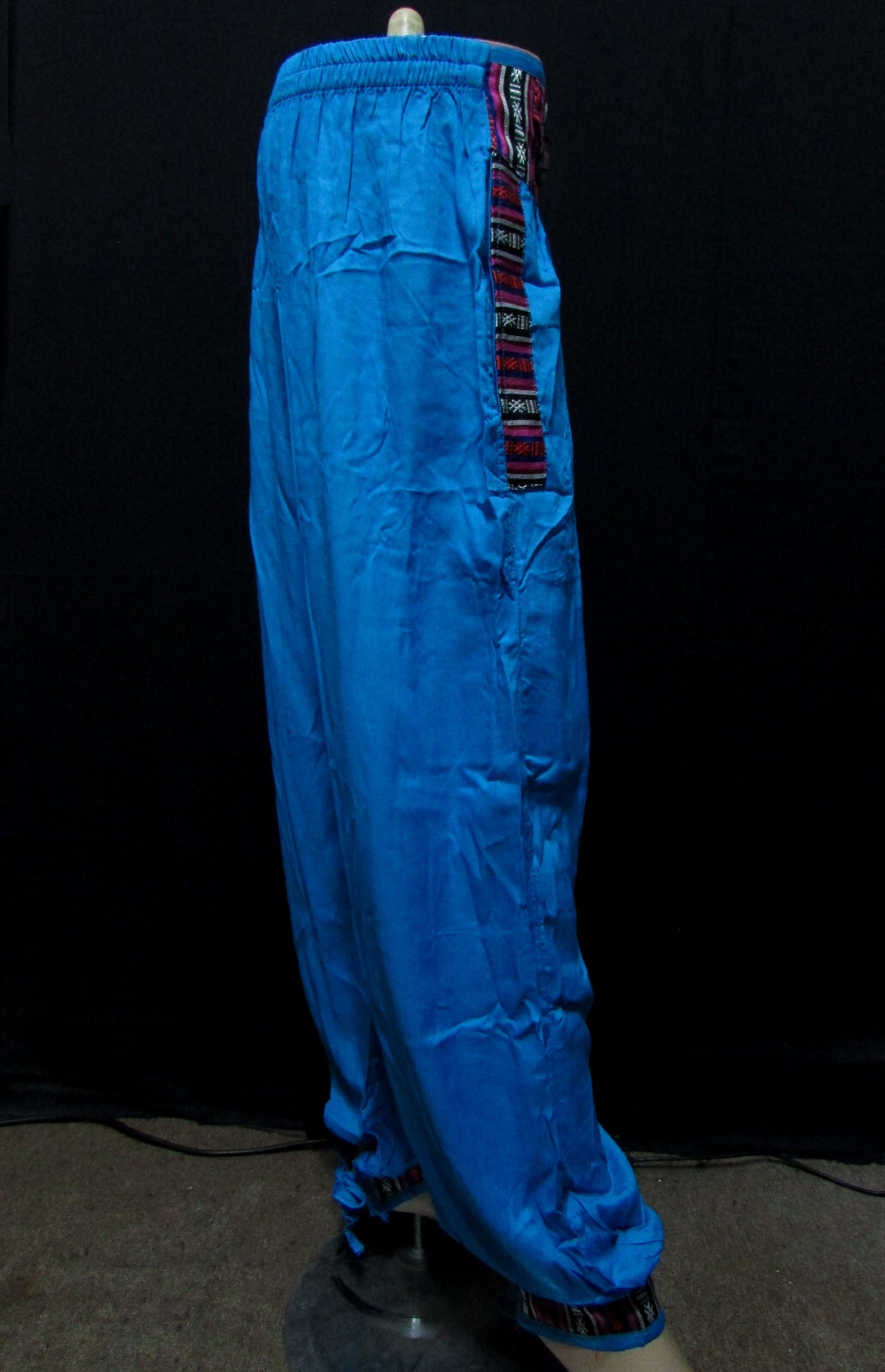 Handloom Cotton Trouser If you are looking for a summer trouser this is the perfect got to have product. This trouser has been in the market since before Hippy era and still people love to wear it just because of its quality and unique design. The slight variation in terms of fabric knitting, size, colors and odd threads are accepted as part of its making and are not considered as defect. We are into fair trade business and we are against child labor what so ever. Happy buying and hope to hear if there is any questions regarding any of our products. This a brand new (with tag) garment cotton/ rayon fabric trouser entirely handmade in Nepal. It has elasticated waistband at the back. The trouser has two inside pockets and three small coin pockets at the front. It can be used as casual wear. The tie in the ankle will make you feel comfortable as well as stylish looks. Fabric:- Cotton/Rayon Color:- Blue Size :- L/Free size Condition:- New with tag The measurements are in approximately. Waist Relaxed: 27"/ Waist Stretched up to 36" Length: 42.5" Inseam: 29" Hip: 52" Thigh: 28" Knee: 24" Leg opening: Minimum 10" (Tr401/GCA) Fabric colors may slightly vary due to light effects. Hand wash Separately in cold water. Please read our policy before bidding/buying. Please note that I have done my best to give you the exact accurate color of the product as I can and have mentioned in the details. However, I'm not in the position to guarantee that every screen computer monitor will depict the actual color of the products. Please message me if you are concerned about the color or about any details before purchasing. It is worth to purchase handmade products For whole Sale contact us. Benefits of Buying Handmade Products Environmentally friendly. Items that are handmade take less energy and natural resources to produce than items made on a mass production assembly line. ... Better for the economy. Buying handmade products can also create jobs and strengthen the economy. ... Purchases you can feel good about. You will feel the human touch. The older it gets the better value you get (antique).