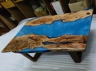 Blue Epoxy Coffee Dining Table Top Live Edge Art Wooden Handmade Furniture