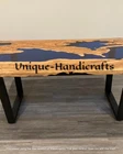 Blue Epoxy Coffee Table Top, Epoxy Wooden Center Table, Christmas Decors