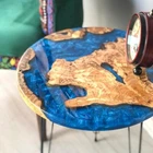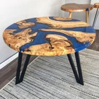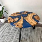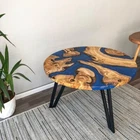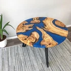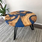 Blue Epoxy Coffee Table Top Round Handmade Wooden Furniture For Gift Her