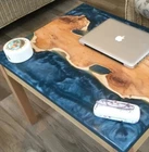 Blue Epoxy Resin Dining Table Handmade Furniture Wooden Live Edge Home Decor