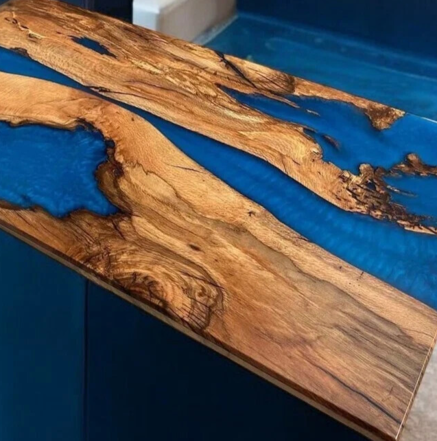 $ 400.99Rectangle Blue Resin Dining Table Natural Live Edge Wood Countertop Furniture De