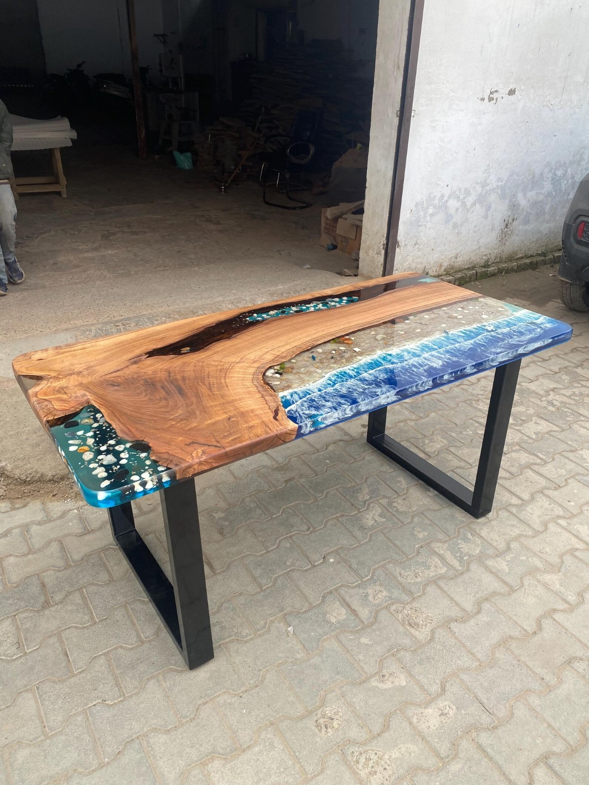 $ 291.97Ocean Blue Epoxy Resin Coffee Table Handmade Modern Custom Furniture