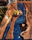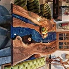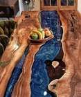 Blue Epoxy Table Tops Custom Made Acacia Wood Dining Room Furniture Resin River