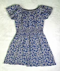 Gap brand blue dress with white floral pattern. The flowers have a pink center. The dress is a girls size Large. The midi length dress has flutter sleeves and the waist is gathered / ruched with 5 lines of elastic thread. Measures 26 1/4” longer from shoulder to hem. The dress is 100% Cotton and is machine washable. The dress is in excellent pre-owned condition. It is clean with no stains, rips, or tears. The size and care tag is still attached. Buying from the original owner. Comes from a smoke free and pet free home.