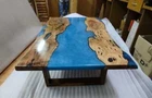 Blue Live Edge Epoxy Dining Table, Kitchen Slabh Table, Console Bar Table Decors