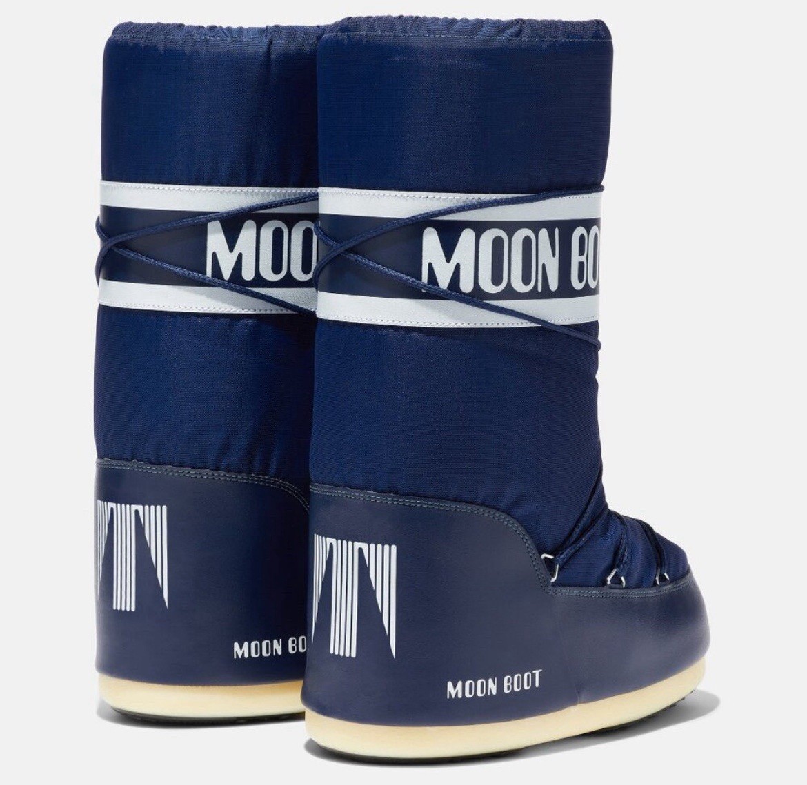 The Blue Moon Boots 35/38 are a pair of women's snow boots by Moon Boot. With a round toe shape and flat heel style, these boots are perfect for casual occasions during the winter season. The blue nylon upper material and rubber outsole provide both style and durability, making them a practical and fashionable choice for cold weather. These boots are designed for standard shoe width and come in a size 6 US shoe size.
