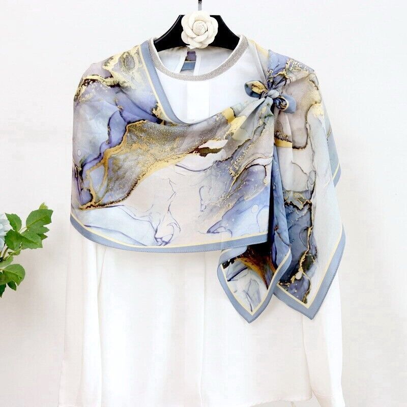 $ 25.58New Boutique 2025 14Momme Mulberry Silk Square Scarf Delicate Printing 25''