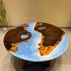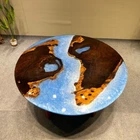 Blue Ocean Epoxy Table, Wooden Table , Epoxy Resin River Table, Round Table Deco