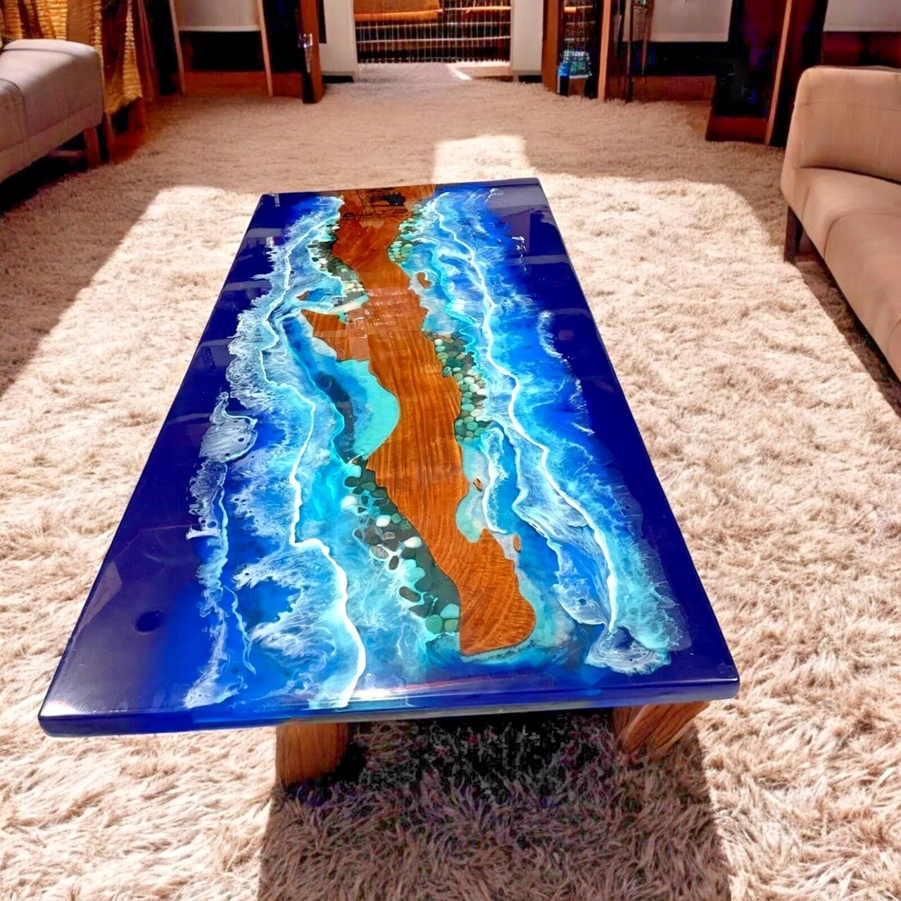 Style: Art Deco Color: Blue Item Width: According To Size Variation Year Manufactured: 2024 Wood Tone: Dark Wood Theme: Arts Item Length: According To Size Variation Handle Material: Resin Country/Region of Manufacture: India Seating Capacity: Up to 6 Item Weight: According To Size Shape: Rectangular Number of Drawers: 0 Model: Dining Table Time Period Manufactured: 21st Century (2000-Now) Care Instructions: Clean with Dampen Cloth Tabletop Thickness: 35mm Additional Parts Required: No Room: Dining Room, Living Room Finish: Polished Product Line: Handmade Required Tools: No Tools Required Packaging: Export Packaging Item Height: According To Size Variation Indoor/Outdoor: Indoor & Outdoor Department: Adults Type: Dining Table Brand: hariomhandicraft Features: Live Edge Wood Tabletop Material: Resin Material: Wood Handle Finish: Polished Assembly Required: No Pattern: Solid