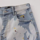 Blue Purple Brand Colorful Splash-ink Distressed Jeans Washed Slim Fit Jeans Ensure the address provided at checkout is accurate,as we will ship to this address. 🌐 Shipping Information: • Free Shipping: Economic Logistics •⏰ Handling Time: 3-5 business days. •📦 Shipping Time: 5-8 business days. Jeans is skinny. Please choose according to size table. If you like loose-fitting, you could buy a bigger size.