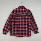 Gently worn, no visible flaws. Fabric shows minimal wash wear consistent with light use. Buttons are intact and function properly; lining is clean with no stains or holes observed. Brand: Blue Ridge by Wrangler Clothing Company Item: Sherpa-lined flannel jacket (shirt jacket style) Gender/Size: Mens Medium (M/M) Color/Pattern: Red and Navy Blue plaid with tan/cream accents Closure: Button front Pockets: Two chest flap pockets with button closures Material (per tags): Shell 100% Cotton; Body lining 100% Polyester sherpa; Sleeve lining 100% Polyester; Fill 100% Polyester Features: Warm sherpa fleece body lining, classic plaid flannel exterior, button cuffs, versatile workwear/outdoors layer Notes: Tag size listed; please compare to a similar garment for best fit. Measurements: - Previous washings may change the sizing written on the tag. - Please refer to the photos above for all measurements. - Please compare our measurements to that of one of your favorite garments. - Please note, item measurements are approximate . All items are bagged and sealed after being photographed, then stored in a smoke free environment to ensure the item is exactly the same as when photographed. All items have been washed per eBay standards & policies. I carefully package and ship daily. Feel free to contact me with any questions.