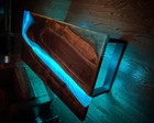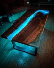 Transform your kitchen and dining space into a coastal haven with our stunning blue walnut epoxy table. Meticulously handcrafted, this one-of-a-kind piece seamlessly blends the warmth of walnut wood with the ethereal beauty of ocean-inspired epoxy resin. Key Features: Natural Elegance: The table is crafted from high-quality walnut wood, showcasing its natural grains and warm tones. Each piece of wood is carefully selected for its unique character. Natural Resin Artistry: The tabletop features a captivating epoxy resin design that mimics the fluidity and movement of ocean waves. Swirls of blues, greens, and whites create a mesmerizing visual experience. Durable and Functional: The epoxy coating not only adds a stunning aesthetic but also provides a durable, heat-resistant, and easy-to-clean surface, making it ideal for daily use in your kitchen and dining area. Versatile Design: Whether you're hosting a dinner party or enjoying a family meal, this table seamlessly blends into various decor styles, from coastal and rustic to modern and contemporary. Custom Craftsmanship: Each table is handcrafted by skilled artisans, ensuring a level of craftsmanship and attention to detail that sets it apart from mass-produced furniture. Note:- This is Only table top, Leg /base is not included , If you have any kind of query ,please message us Specifications: Dimensions: 48"x24" Inches Materials: High-quality wood, epoxy resin Colors: Blue Finish: Glossy and durable Shipping and Packaging: * We can make the table top similar to this as it is handmade or natural process you will not get the same as shown in picture but you will get the similar one * The table top is made in Agra India & fully handmade. * The top will be delivered by FedEx or DHL free of cost door to door. * If there is any local tax, custom duties or Vat will be paid by the buyer at the destination. * The parcel is dispatch with proper packing & fully insured covering all kind of risk. Thanking You...