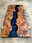 Blue River Epoxy Coffee & Dining Countertop, Wooden Epoxy Slab, Office Desk Deco